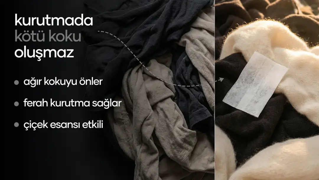 Giysilerinize hoş bir koku verir, statik elektriği önler ve kurutma sürecini daha düzenli hâle getirir.